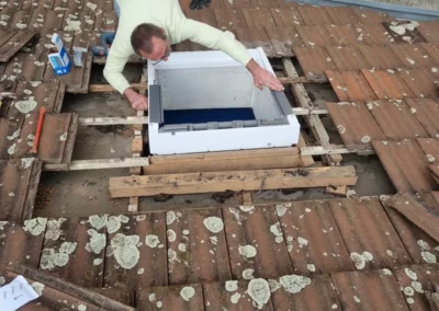 Nos prestations couvrent un large éventail de services : remplacement de tuiles, réparation de faîtières, habillage de dessous de toit en PVC, démoussage et traitement hydrofuge, peinture et imperméabilisation de toiture, sans oublier l’habillage de bandeaux en aluminium et l’isolation des combles.